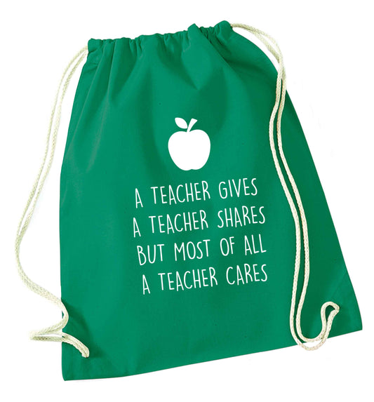 A teacher gives a teacher shares but most of all a teacher cares | Drawstring Bag