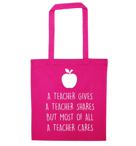 A teacher gives a teacher shares but most of all a teacher cares | Tote Bag