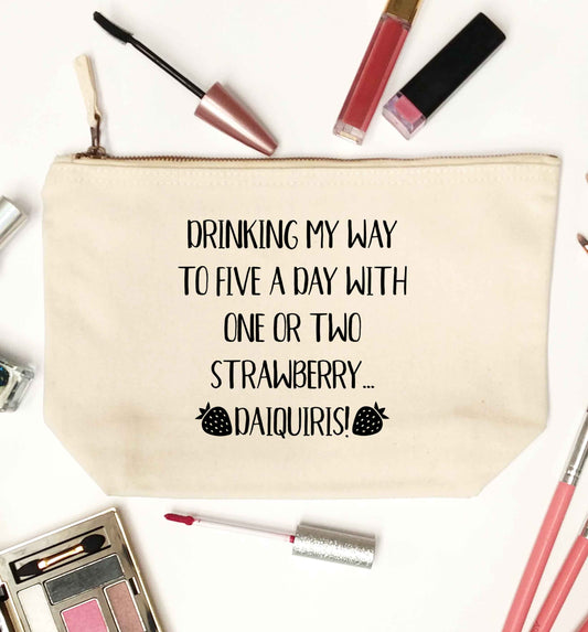 Drinking my way to five a day with one or two straberry daiquiris | makeup / wash bag