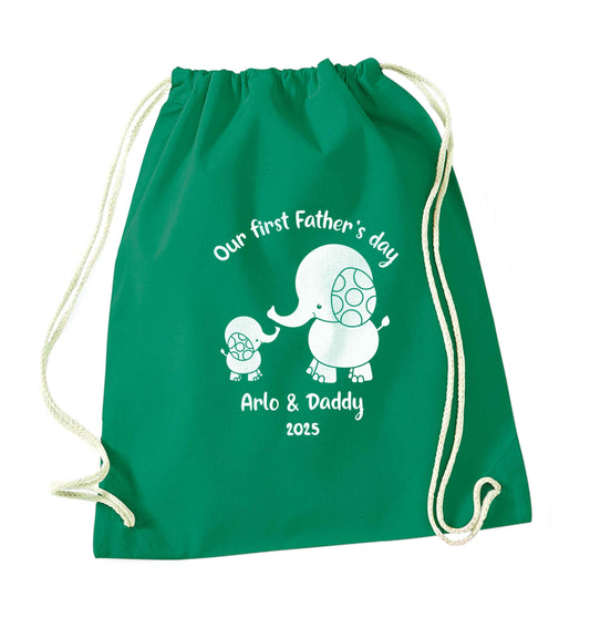 Our first Father's day personalised date and names | Drawstring Bag