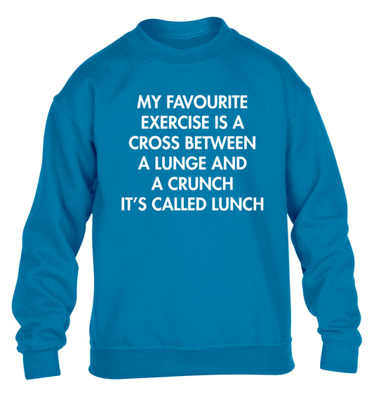 My favourite exercise is a cross between a lung and a crunch it's called lunch | Children's Sweater