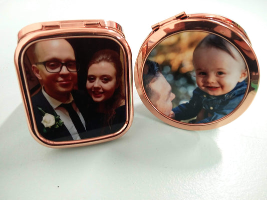 Personalised rose gold pocket mirrors | Custom order any text colour and font | Flox Creative