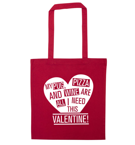 My Pug, pizza and wine are all I need this valentine! | Tote Bag