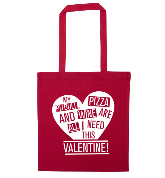 My pitbull, pizza and wine are all I need this valentine! | Tote Bag