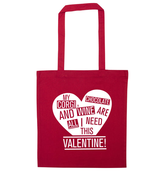 My corgi, chocolate and wine are all I need this valentine! | Tote Bag