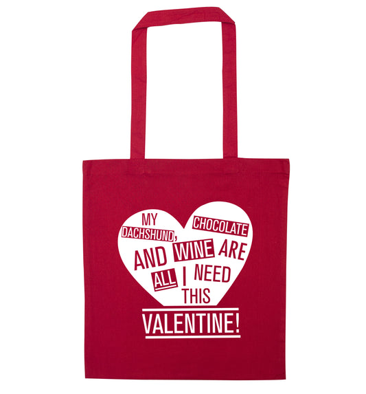 My Dachshund, chocolate and wine are all I need this valentine! | Tote Bag